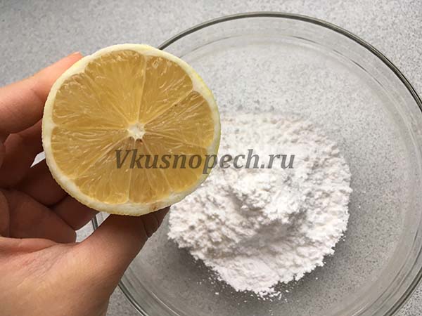 Делается это очень просто. В отдельной посуде смешиваем пудру и сок со второй половинки фрукта. Консистенция должна быть достаточно вязкой (как жидкая сметана), чтоб глазурь не стекла с поверхности. При необходимости, можете добавить пудру или уменьшить количество сока, чтобы достичь нужной консистенции.