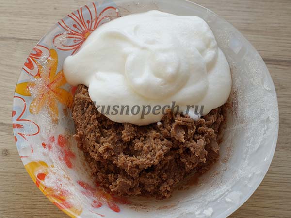 Взбитые белки аккуратно вмешать в тесто.