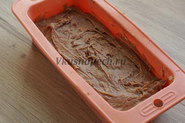 Перекладываем тесто в специальную форму. Выпекаются подобные кексы в духовке при температуре 180 градусов. Форму с тестом ставим в уже хорошо разогретую духовку. Ориентировочное время выпечки – 50 мин. Обязательно проверяйте готовность деревянной шпажкой. Возможно понадобится чуть больше времени.