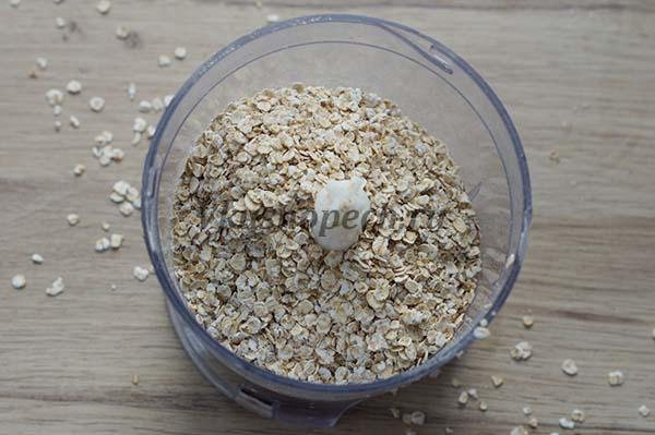 Далее нам необходимо измельчить в муку овсяные хлопья. Сделать это вы можете при помощи блендера или кофемолки.