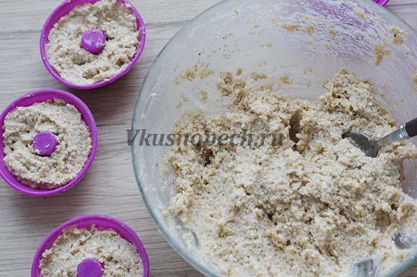 По истечению времени, раскладываем тесто для кексов в формы.