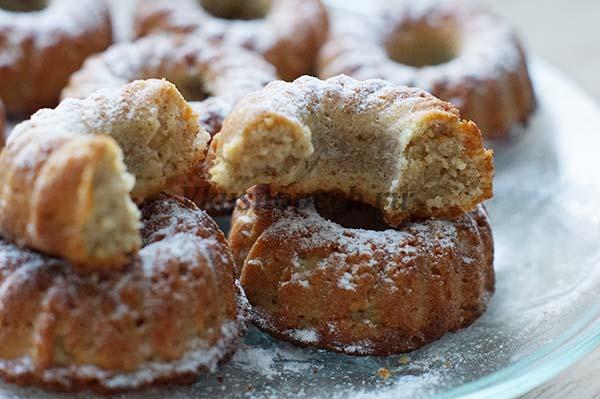 Для подачи выпечку достаточно присыпать сахарной пудрой. Конечно, при желании, можно и шоколадной глазурью полить, и кремовую шапочку сделать. Но, поверьте, этот рецепт кексов в формочках настолько сбалансированный, что ничего этого делать не потребуется. По вкусу выпечка очень и очень самодостаточная.