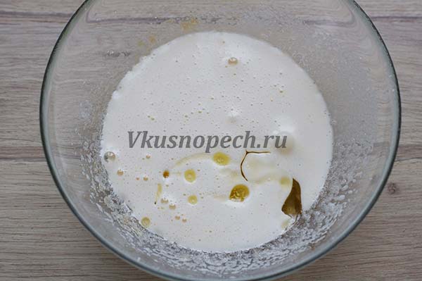 Добавляем молоко комнатной температуры и масло. Взбиваем несколько минут.