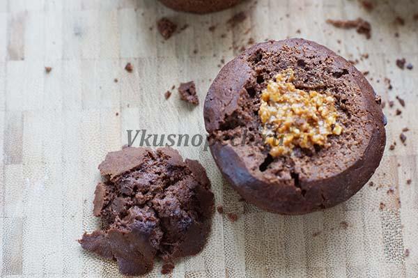 Перед этими нежнейшими шоколадными кексами с вареной сгущенкой и арахисом внутри не смогут устоять даже те, кто к сладкому равнодушен. Десерт получается очень самодостаточный, всего в нем в меру – и сладости, и “шоколадности”.