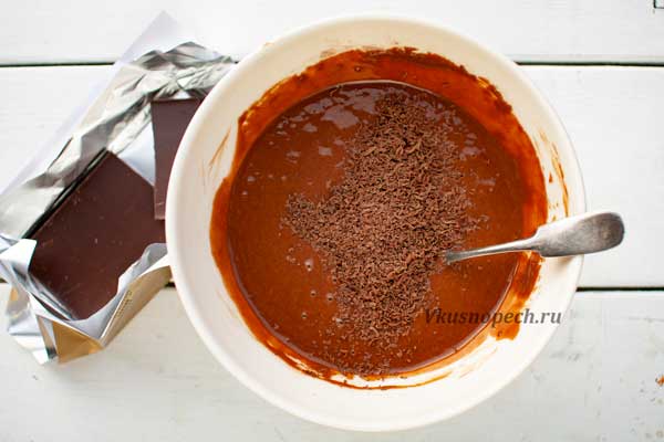 Шоколад натереть на терке и отправить в общую массу.
