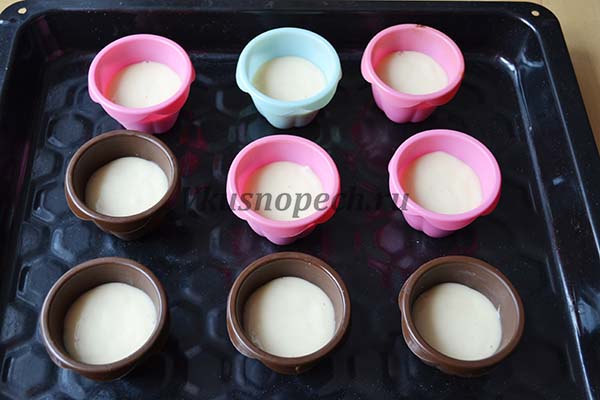 Сверху выкладываем еще немного теста, чтобы покрыть начинку. В общей сложности заполняем капсулы на 2/3.
