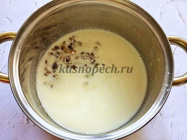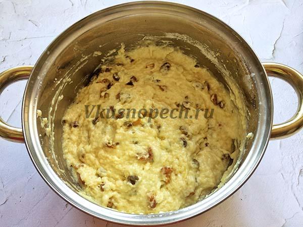 В кефирную массу всыпать изюм.