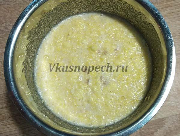 Переходим к самому интересному – замесу. Подберите удобную посуду для этого процесса и перелейте в нее опару. После чего добавьте просеянную муку, соль, ванилин и цедру лимона.