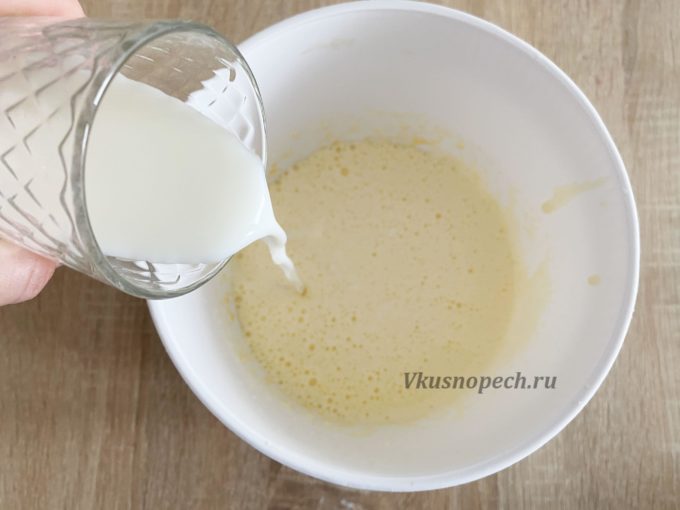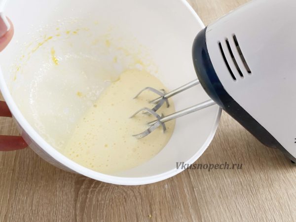 В глубокой емкости взбиваем яйцо с эритритом в пышную белую пену.