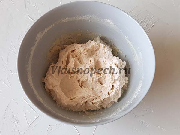 Частями вводим просеянную муку.