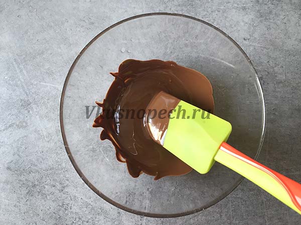 Шоколад ломаем маленькими кусочками и топим в микроволновке импульсами, перемешивая массу каждые 15 секунд. Либо по старинке, сооружаем водяную баню, и превращаем шоколадные кусочки в жидкую массу проверенным способом.