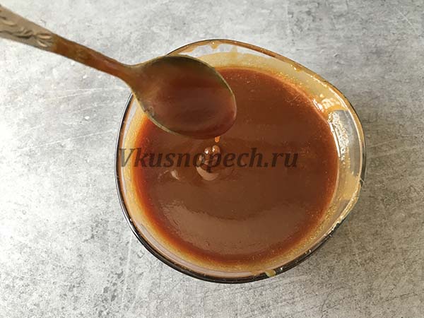 Снимаем с огня, переливаем в чистую емкость и оставляем остывать при комнатной температуре. В горячем состоянии консистенция соуса достаточно жидкая, но после остывания он станет значительно гуще.