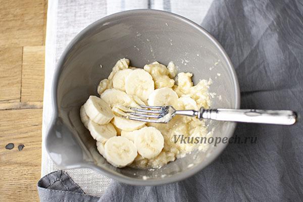 Бананы разминаем вилкой до получения однородного пюре. Блендер не используем.