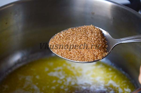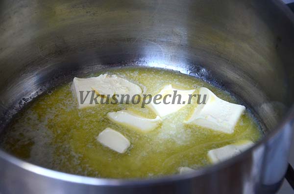 Сливочное масло отправляем в сотейник. Ставим на плиту. Ждем пока оно растопится.
