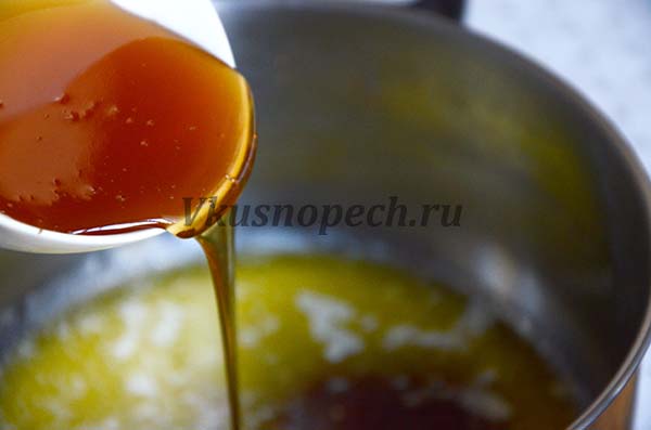 Следом мед. Помешивая доводим до однородности. Нужно, чтобы сахар полностью растворился.