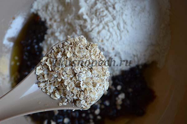 Снимаем с плиты. Добавляем муку, хлопья, разрыхлитель, лимонный сок.