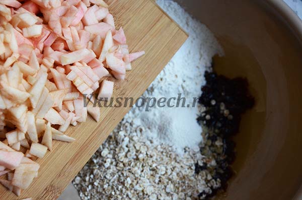 Этот рецепт печенья из овсяных хлопьев с яблоками не совсем стандартный. Да, вы можете придать ему привычную форму, сформировав небольшие шарики, а затем приплюснув их дном стакана. Но, благодаря отлично подобранным добавкам, этот десерт заиграл новыми красками. Обязательно к приготовлению!