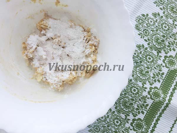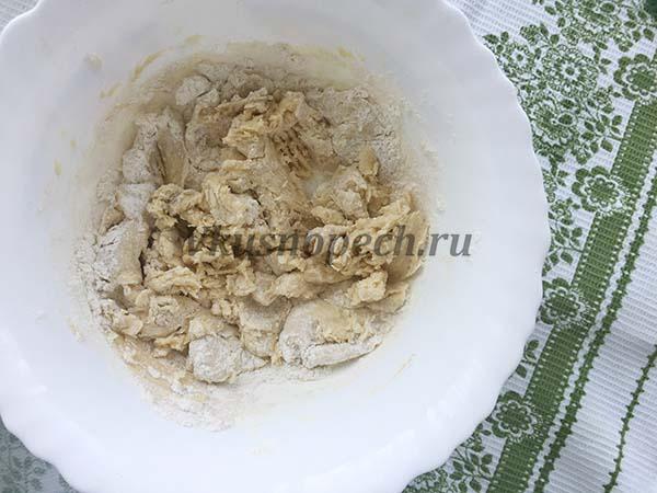 Вводим в три приема просеянную муку.
