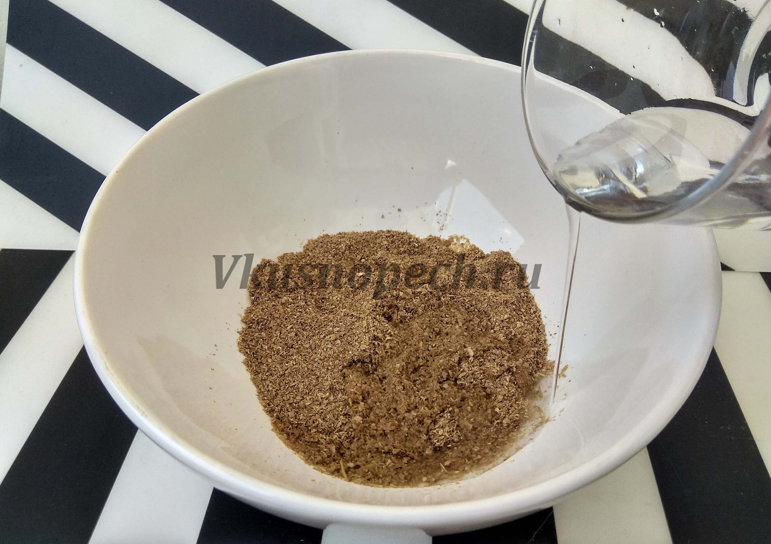 Отруби замешиваем с водой.