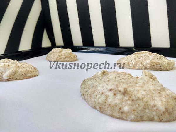 На подготовленный противень, при помощи ложки выкладываем будущее печенье.