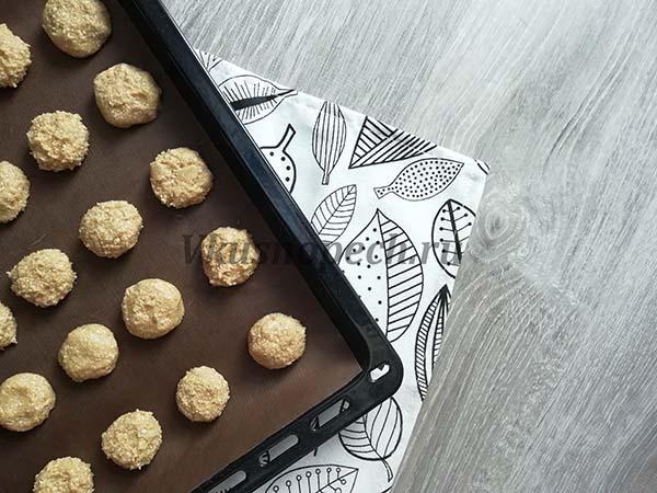 Отправляем минут на 40 в холодильник или на 15 – в морозильную камеру. По истечении времени, плотную массу формируем в небольшие шарики.