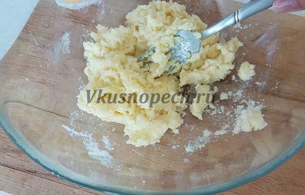 Мягкое сливочное масло растираем с сахаром, используя вилку.