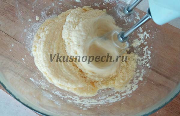 Добавляем яйцо (комнатной температуры), и взбиваем массу миксером около 2 минут.