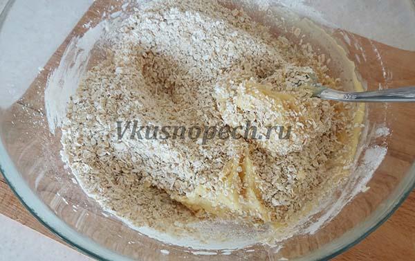 Заключительный этап – измельченные в блендере овсяные хлопья. Их также вмешиваем в тесто лопаткой.