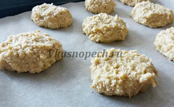 Выкладываем заготовки десертной ложкой на противень, застеленный пергаментом.