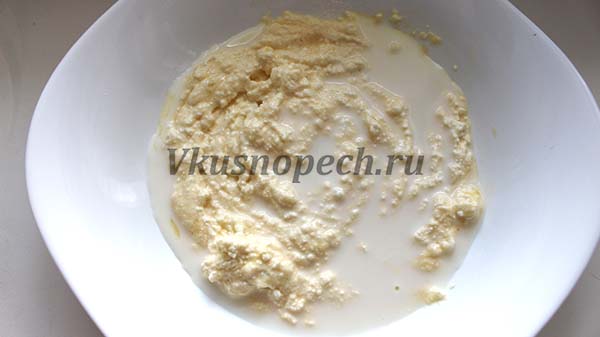 Добавить молоко и хорошенько перемешать.