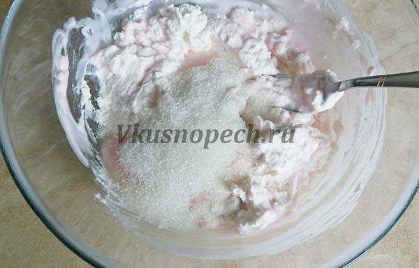 Выкладываем творог в миску и разминаем вилкой. Добавляем йогурт.