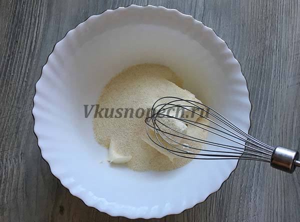 Мягкое масло соединяем с сахаром, добавляем щепотку соли и взбиваем миксером около 5 минут (масса должна стать пышной и белой).