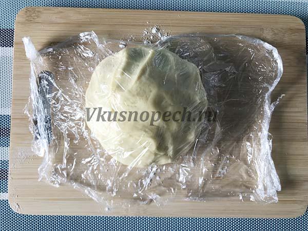 При желании, это можно сделать в комбайне. Тесто в итоге получится довольно эластичным. Из него нужно слепить несколько шаров, накрыть пищевой пленкой и отправить в холодильник на 30-40 минут. Доставать из холодильника тесто нужно частями, по шарику, чтобы не подтаивало.