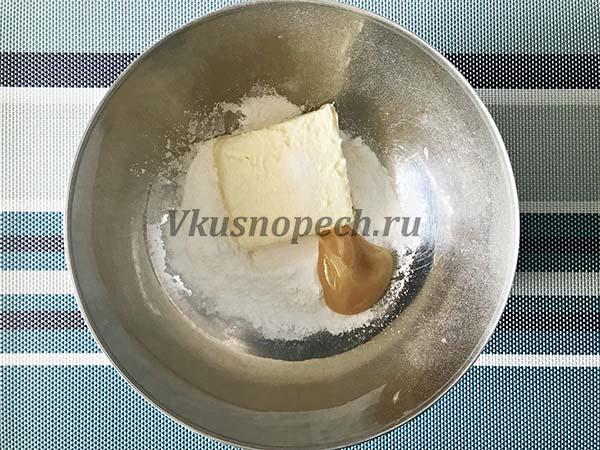 К размягченному маслу добавить сахарную пудру, мед, соль, ванилин и взбить массу до кремообразного состояния.