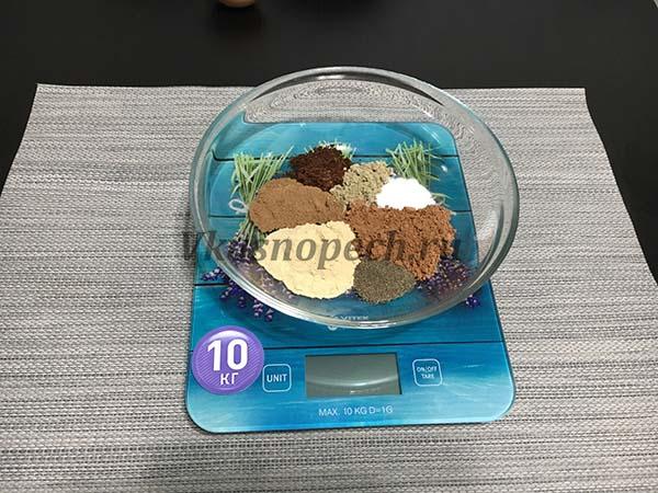 В отдельную посуду отмерьте в соответствии с рецептом специи. Туда же добавьте соду, щепотку соли и смешайте.