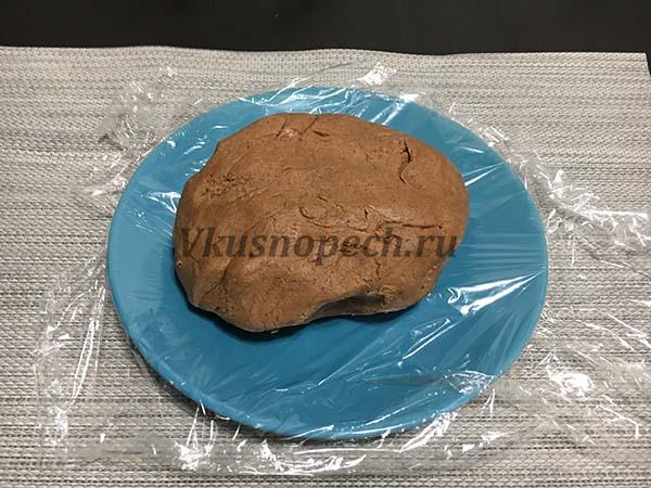 Выполнить замес. В результате у Вас получится мягкое, чуточку липкое тесто. Не пугайтесь, так и должно быть. Заверните его в пищевую пленку и отправьте на 50 минут в холодильник.
