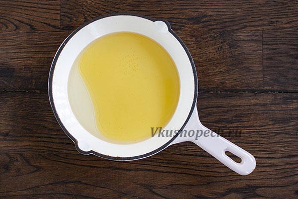 В сотейник с толстым дном, либо в сковороду, отправляем мед и масло. Подогреваем на среднем огне минут 5.