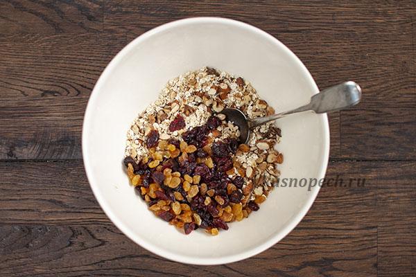 Сухофрукты обязательно промыть и обсушить. После чего отправляем их в ту же чашу. Перемешиваем, чтобы составляющие равномерно распределились.
