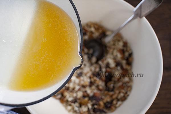Карамель снять с огня и перелить в емкость со злаками.