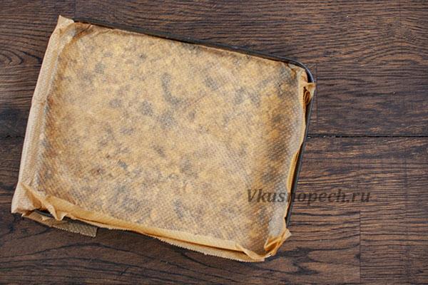 Подготовьте небольшую форму (примерно 15*15). Дно обязательно застилаем пергаментом.