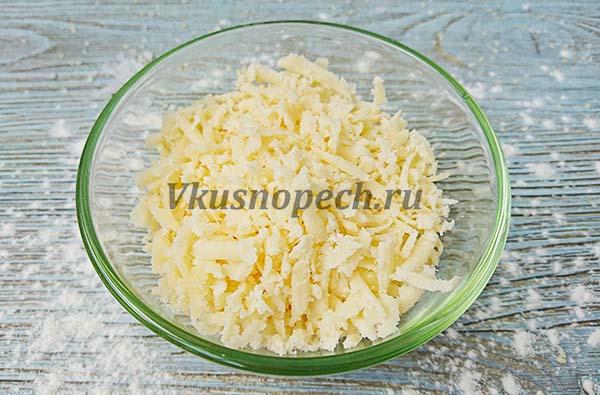 Используя крупную терку, натираем сыр.