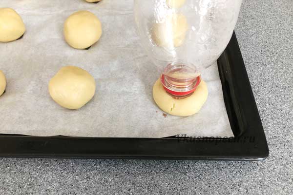 Из полученного теста формируем небольшие шарики. Если хотите сделать печенье максимально одинаковые по размеру, отвешивайте каждую часть на весах. Шарики выкладываем на противень, застеленный пергаментом.