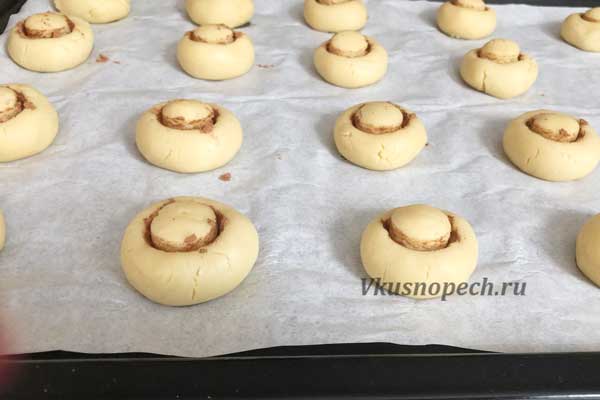 Печенье «Шампиньоны» просто фантастически вкусное. При этом оно до невозможности напоминает настоящие грибочки. Вся прелесть в том, что приготовить его ну очень просто. Не нужны специальные формочки, или супер-ингредиенты. Рекомендую привлекать к процессу деток. Моя малышка всегда только «за» сотрудничество на кухне. Ну а если есть возможность почувствовать себя волшебником, превращая обычные шарики в настоящий шампиньон, радости и восторгу просто нет предела.