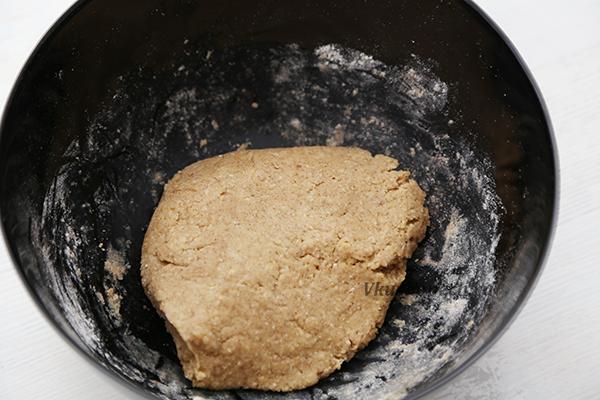 Обернуть тесто пищевой пленкой и отправить на 50-60 минут в холодильник.