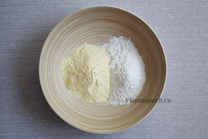 В чистой сухой емкости смешиваем два вида муки.