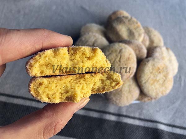 Не содержит глютен или клейковину. Воздушное и тает во рту. А все благодаря кукурузной муке приятного желтого оттенка, сметане, яйцу и сахару, которые надо перемешать. Сформировать из теста заготовки, выпечь в духовке. Выглядит симпатично и свободно готовится дома.