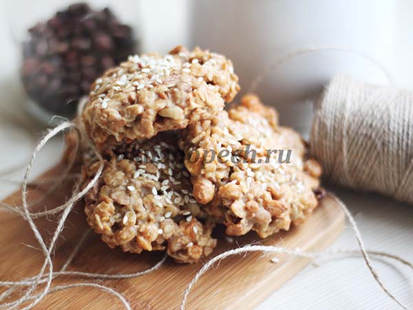 Особенность в том, что готовится без выпекания. Взять овсяные хлопья и начать экспериментировать с начинкой: миндаль и грецкий орех, лен и кунжут, изюм и клюква. Заранее промыть, просушить и нарезать, а затем перемешать с медом. Выложить на противень смесь, разровнять, оставить на время и разрезать на кусочки. Получится большая порция с огромной пользой.