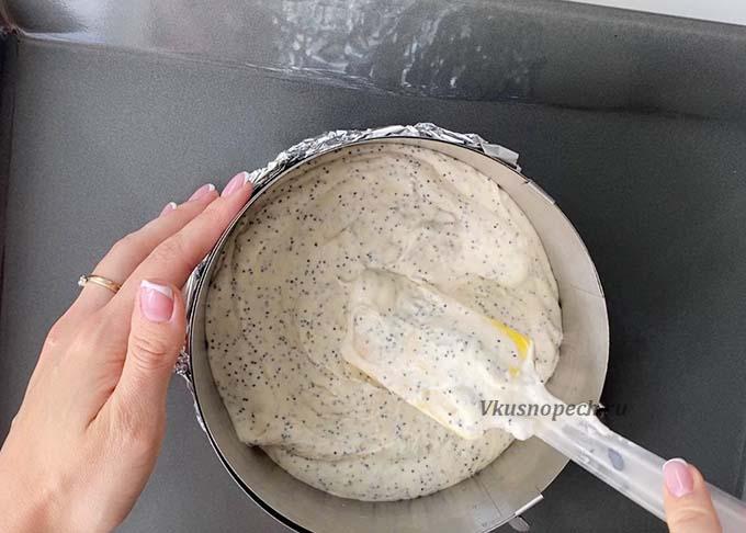 Перекладываем массу в форму. Отправляем в разогретую до 180 градусов духовку на 40-45 минут.