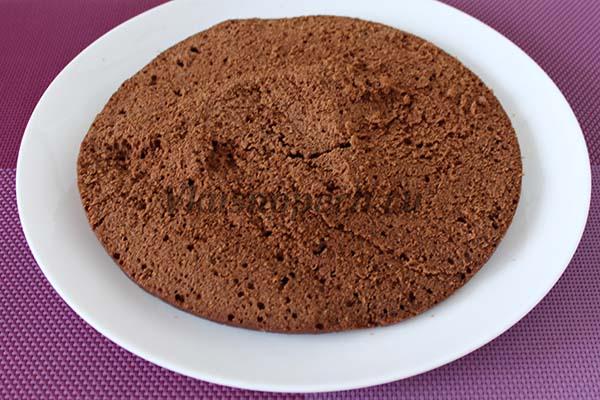 После остывания извлекаем готовую основу из формы и делим на два коржа.