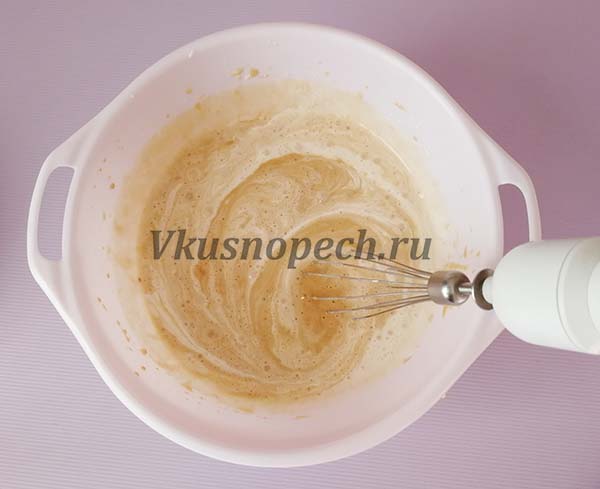 В глубокой емкости взбиваем яйца, постепенно добавляя сахар.